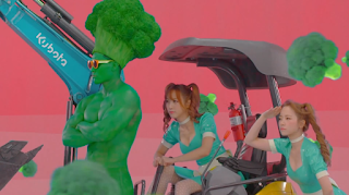 The song's theme seems to be about how broccoli can cure dark circles but this theme is taken into a crazy direction by the broccoli being played by a green man giving it a kind of slight romantic undertone which is just great fun, especially as the girls play their roles with great gusto. They seem to have been into some cosplay too, but I'm not a 100% sure. Great start anyway!
